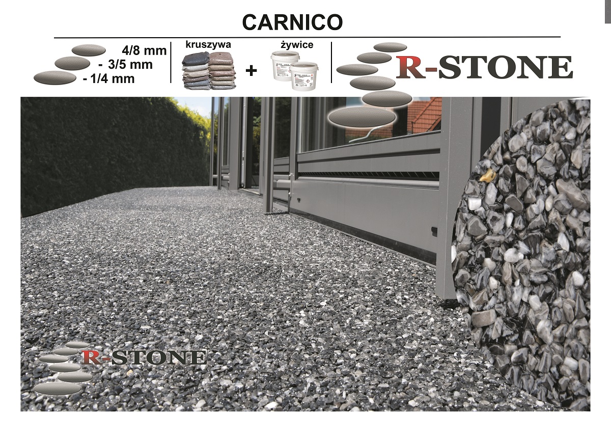 - Kruszyw Marmurowe CARNICO 50 kg, frakcja 2/4 mm lub 4/8 mm kruszywo jest otaczane płukane i suszone pakowane w worki foliowe