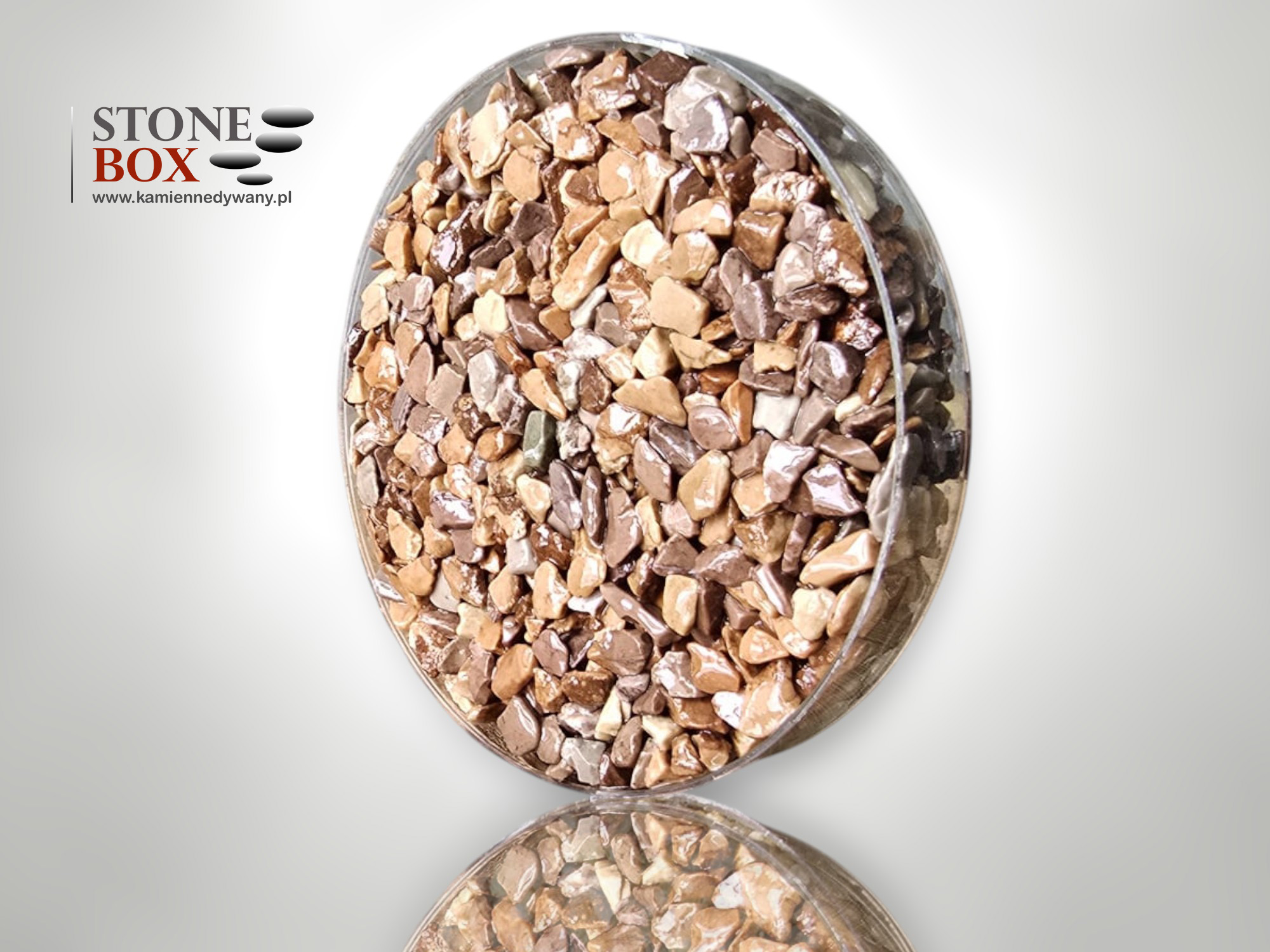 Uwaga: Prezentowana próbka ma charakter poglądowy. Ze względu na to, że wypełniacz stanowi naturalna skała marmurowa, barwa oraz uziarnienie zakupionej próbki mogą nieznacznie odbiegać od finalnego materiału dostarczonego do realizacji nawierzchni. Naturalne różnice w użyleniu i odcieniu są cechą charakterystyczną kamienia i świadczą o jego autentyczności.