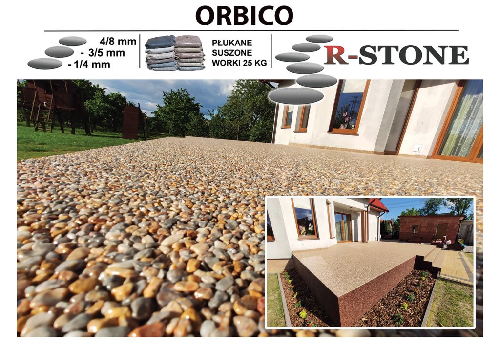 - Kruszyw Marmurowe ORBICO 50 kg, frakcja 2/4 mm lub 4/8 mm kruszywo jest otaczane płukane i suszone pakowane w worki foliowe