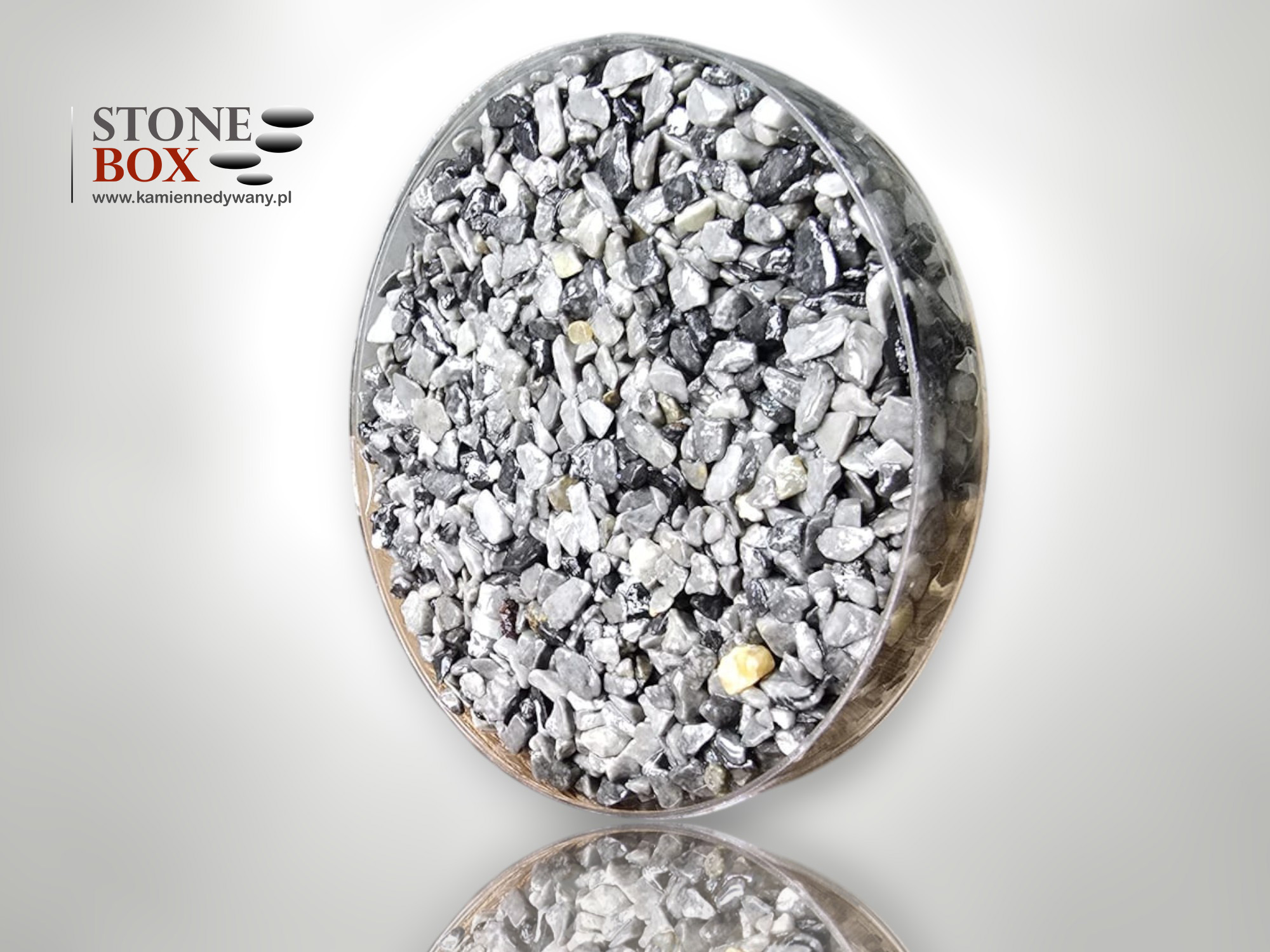 Uwaga: Prezentowana próbka ma charakter poglądowy. Ze względu na to, że wypełniacz stanowi naturalna skała marmurowa, barwa oraz uziarnienie zakupionej próbki mogą nieznacznie odbiegać od finalnego materiału dostarczonego do realizacji nawierzchni. Naturalne różnice w użyleniu i odcieniu są cechą charakterystyczną kamienia i świadczą o jego autentyczności.