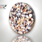 Prezentowany wzornik to profesjonalna próbka systemu kamiennego dywanu, dostępna na www.kamiennedywany.pl. Produkt przedstawia kruszywo zatopione w wysokiej jakości żywicy, zamknięte w poręcznym pojemniku o średnicy 10 cm (fi 10).