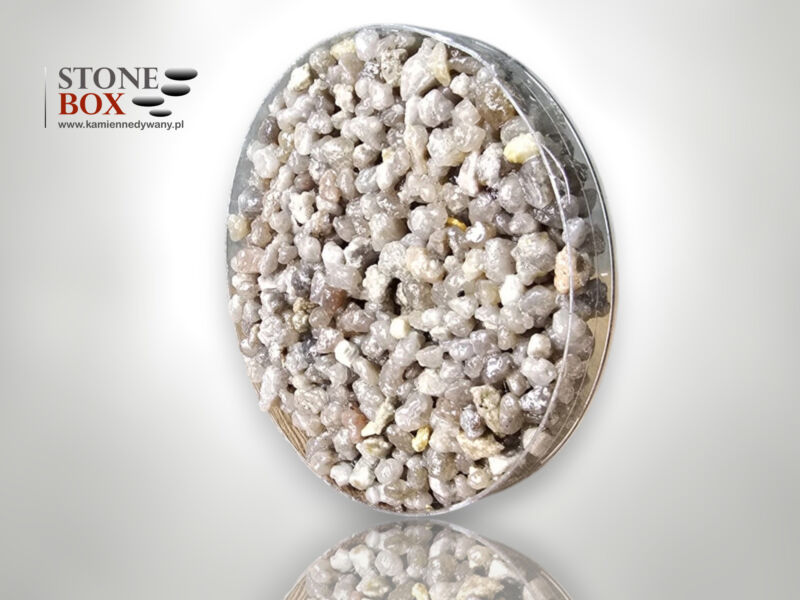 Uwaga: Prezentowana próbka ma charakter poglądowy. Ze względu na to, że wypełniacz stanowi naturalna skała marmurowa, barwa oraz uziarnienie zakupionej próbki mogą nieznacznie odbiegać od finalnego materiału dostarczonego do realizacji nawierzchni. Naturalne różnice w użyleniu i odcieniu są cechą charakterystyczną kamienia i świadczą o jego autentyczności.