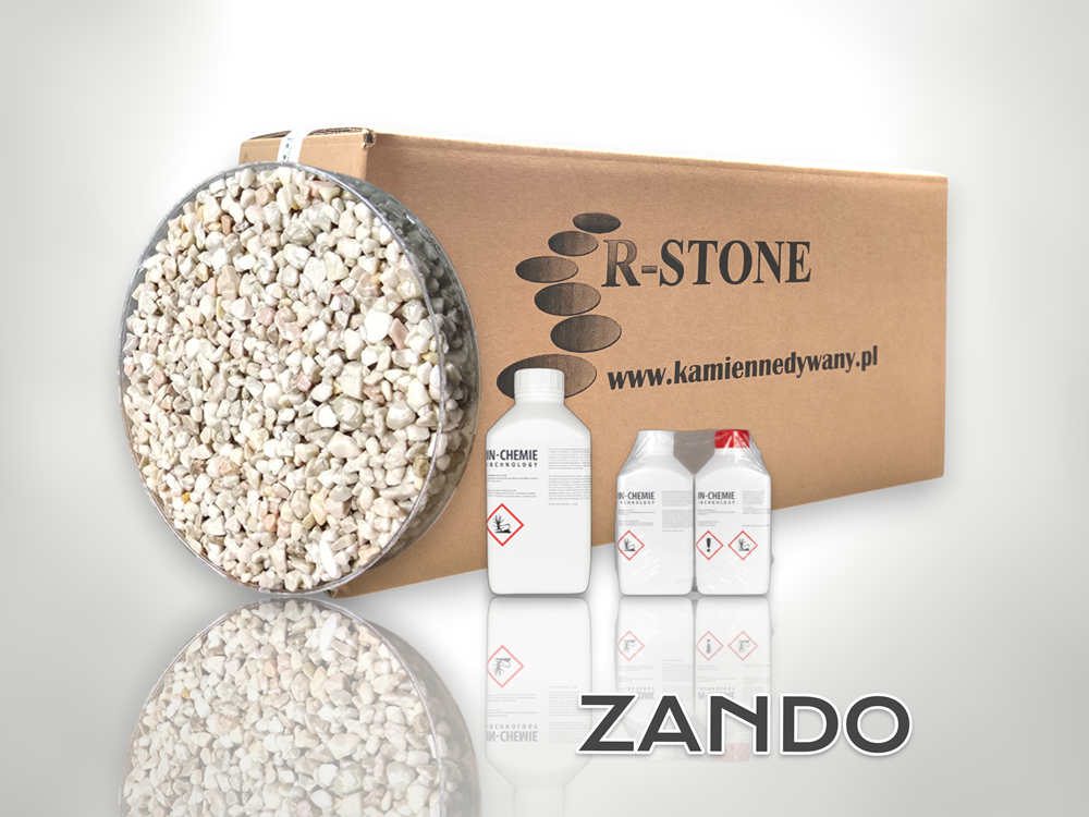 - Kruszyw Marmurowe ZANDO 17 kg, frakcja 1/4 mm, kruszywo jest otaczane płukane i suszone pakowane w worki foliowe